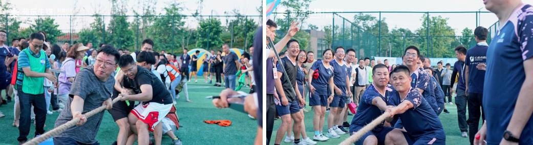 最后“激情拔河”项目,更将全场的热情点燃。以中心为单位的组织形式,大大激发每个人为集体而战的奋斗意识,这是一场力量与毅力的决赛,这是一场团队荣誉的争夺之战。当面对绝对力量优势的时候,我们的选手毫不怯懦,全力以赴,“输什么也不能输了气势”,这就是我们不服输的苑东人。而当面对势均力敌的对手时,这才真的是一场精彩的博弈,从体能到心理,都在经历暴风似的战斗。手足相抵,重心向下,心往一处想,劲往一处使,看着中间的红绳一点一点的移动,铆足劲,屏住气,不到最后一刻,绝不松懈!两边啦啦队也“撕心裂肺”的呐喊着,双手挥舞着,把精神的力量传递到每一位参赛队员心中。